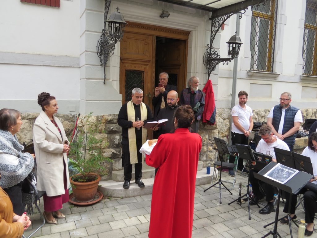Fergeteges koncert következett a Kertvárosi Fúvószenekar előadásában, Vikol Kálmán karnagy szellemes konferálása mellett. Örömzene harsant fel újra az Örmény Katolikus Templom kertjében, ahová jövőre is várjuk a rangos együttest.